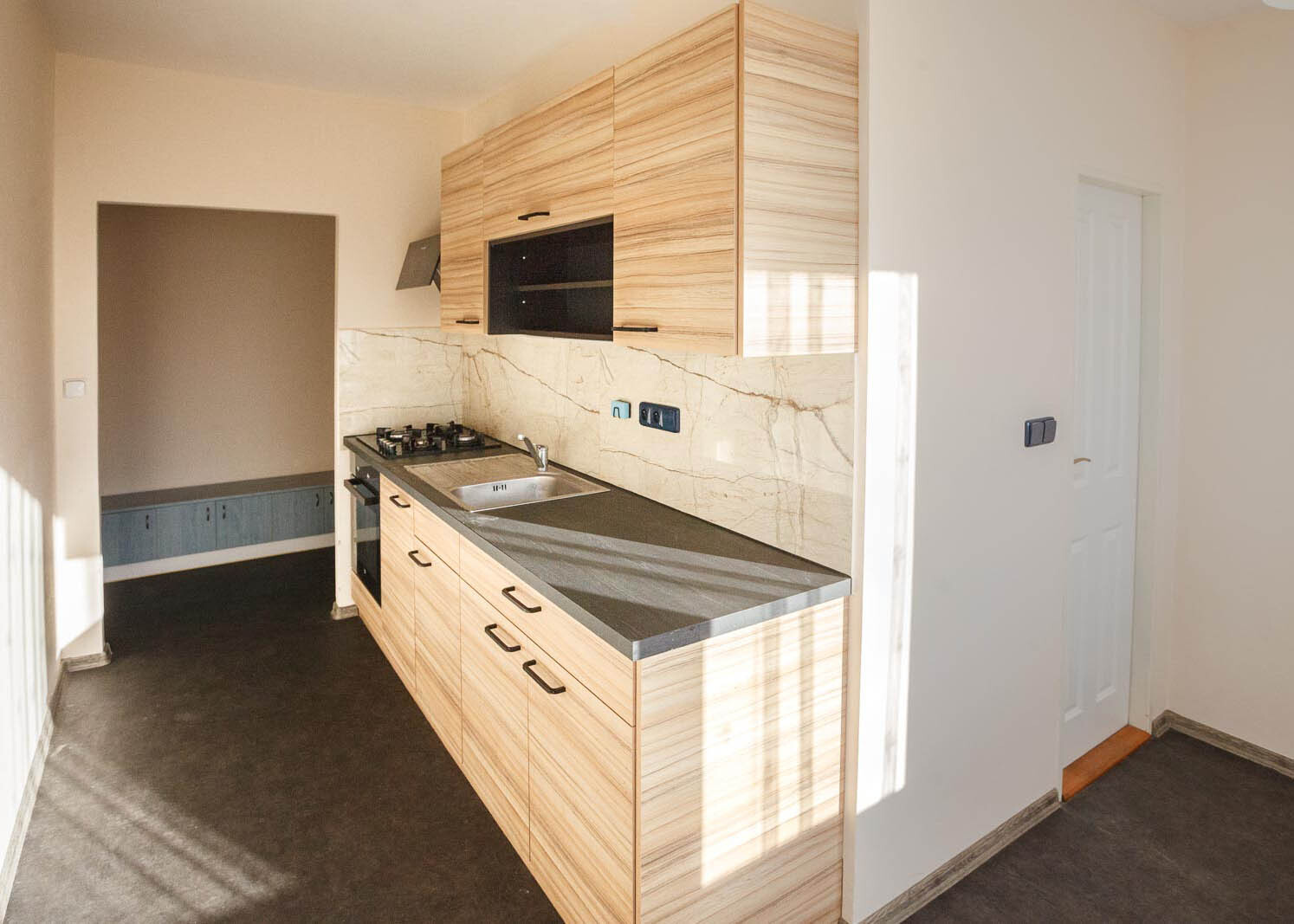 Byt je částečně vybavený – součástí je kuchyňská linka
