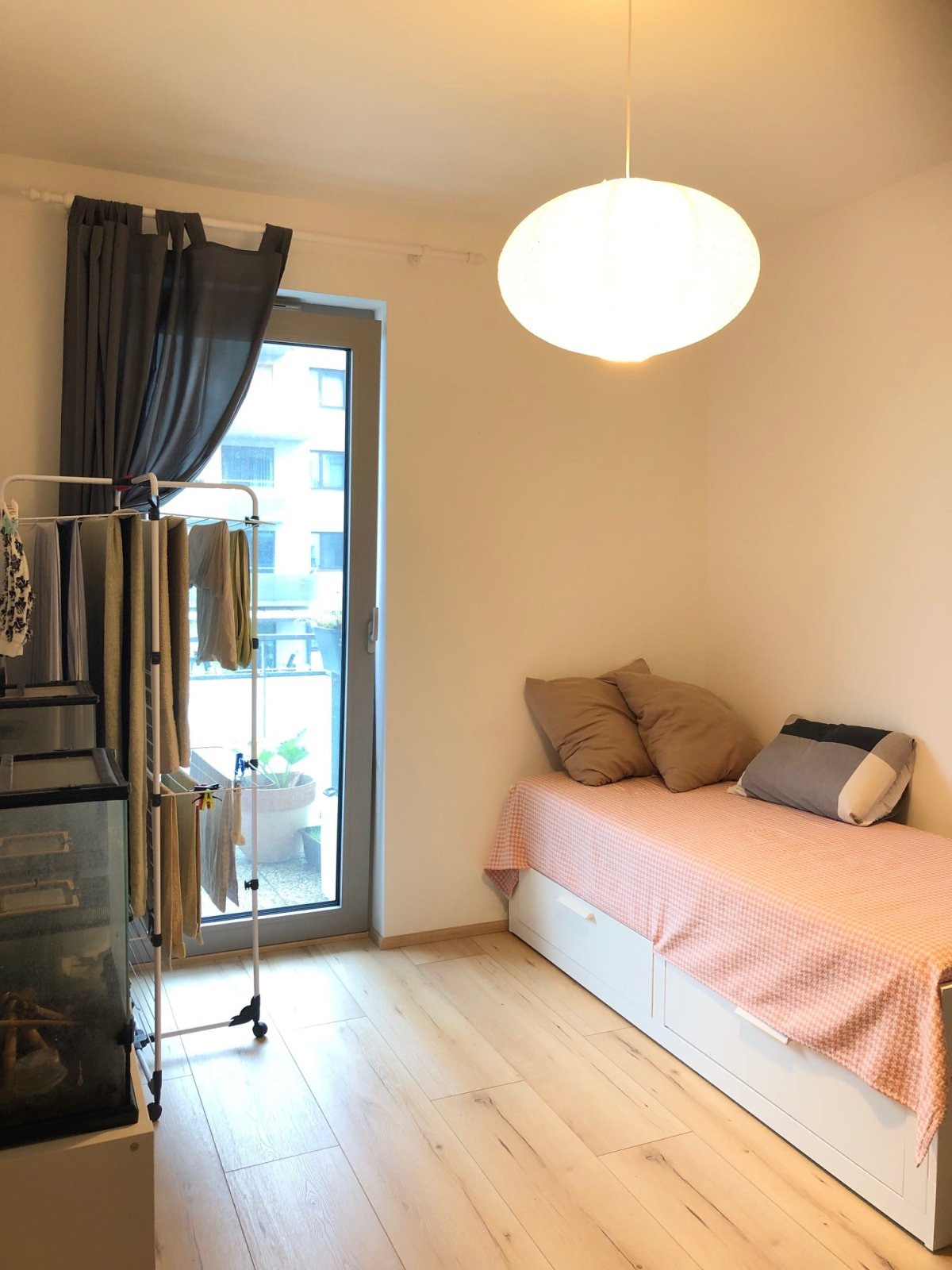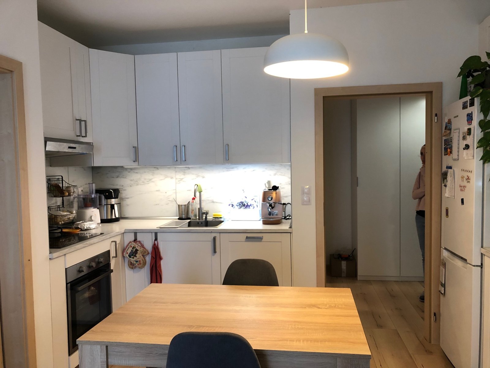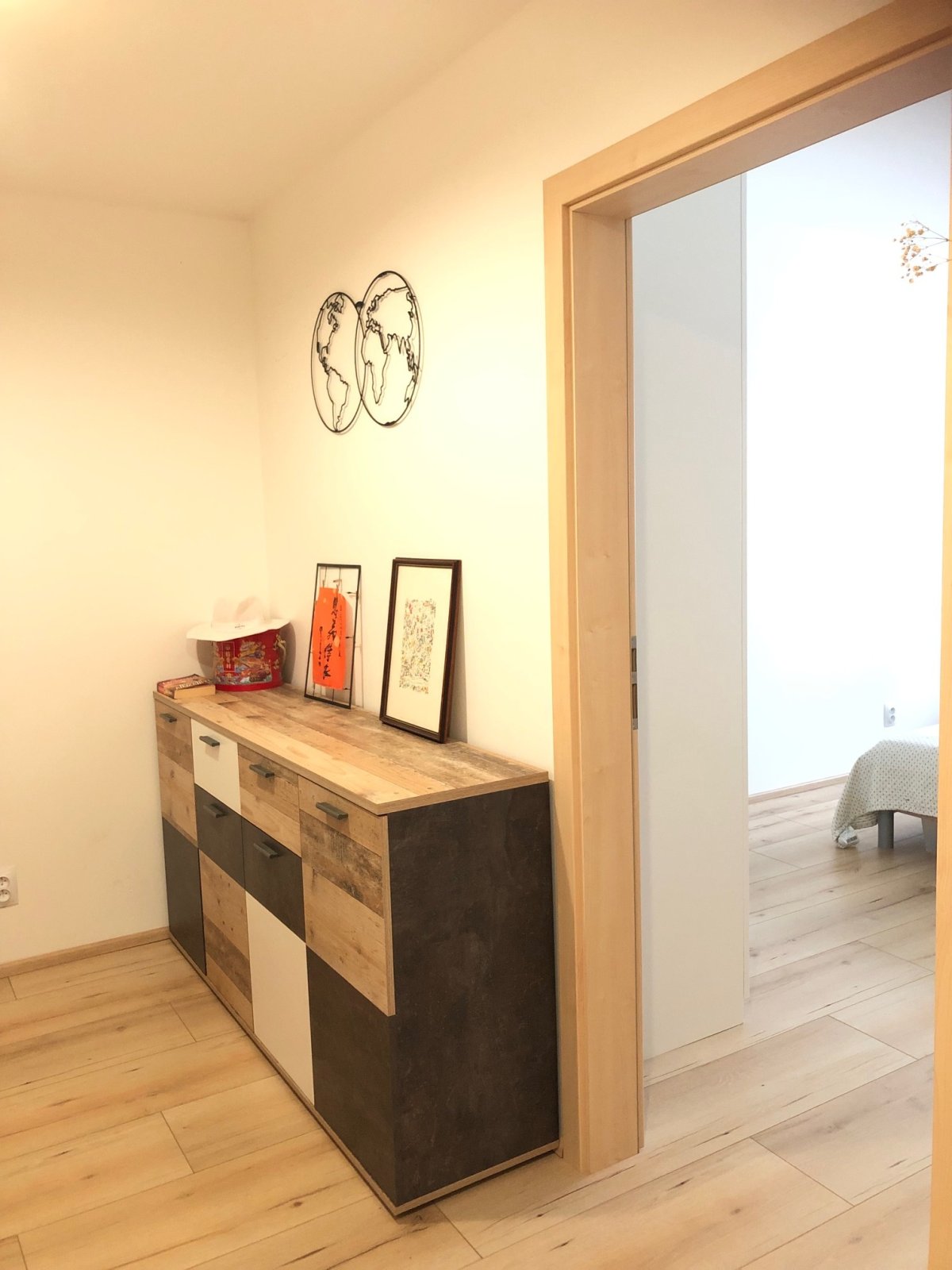 vchází do samostatné ložnice, kuchyně s obývákem a dalšího pokoje. Ze