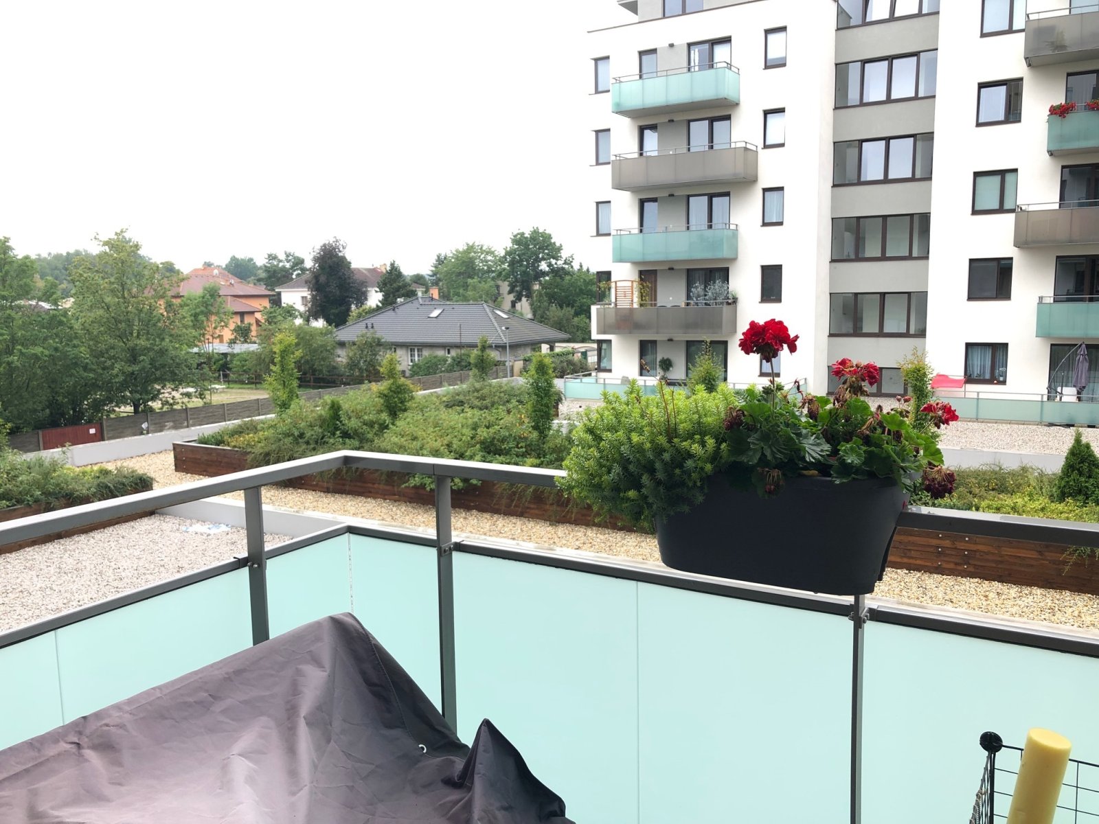 terasu o výměře 7,3 m2 s výhledem na ozeleněný prostor a rovněž velmi