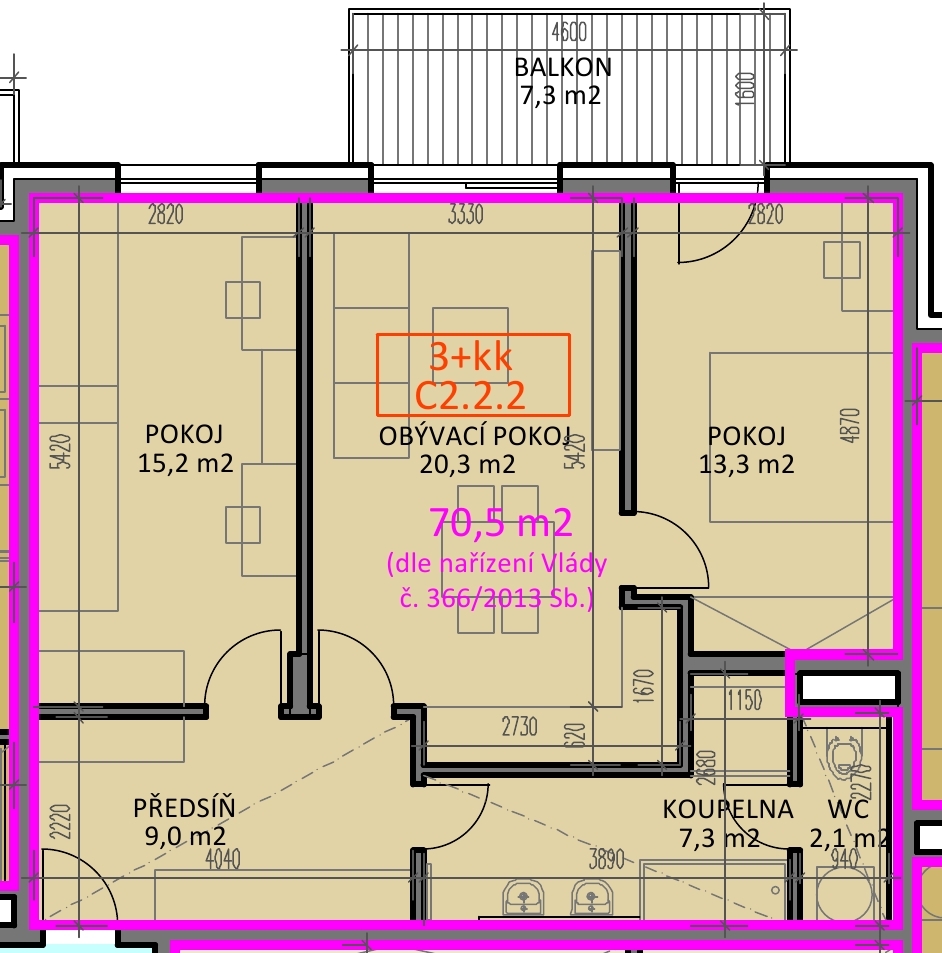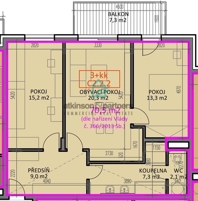 o výměře 70,5 m2 v projektu Byty Stromovka v Českých Budějovicích na