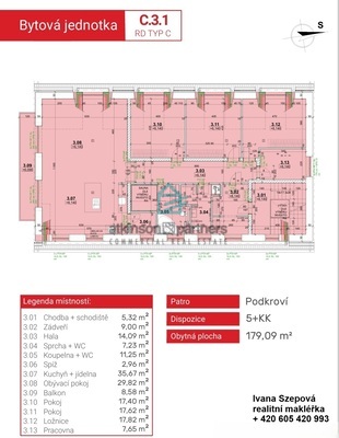6 větších bytů, na pozemku o výměře 3.915 m2. Vzor půdorysů bytů
