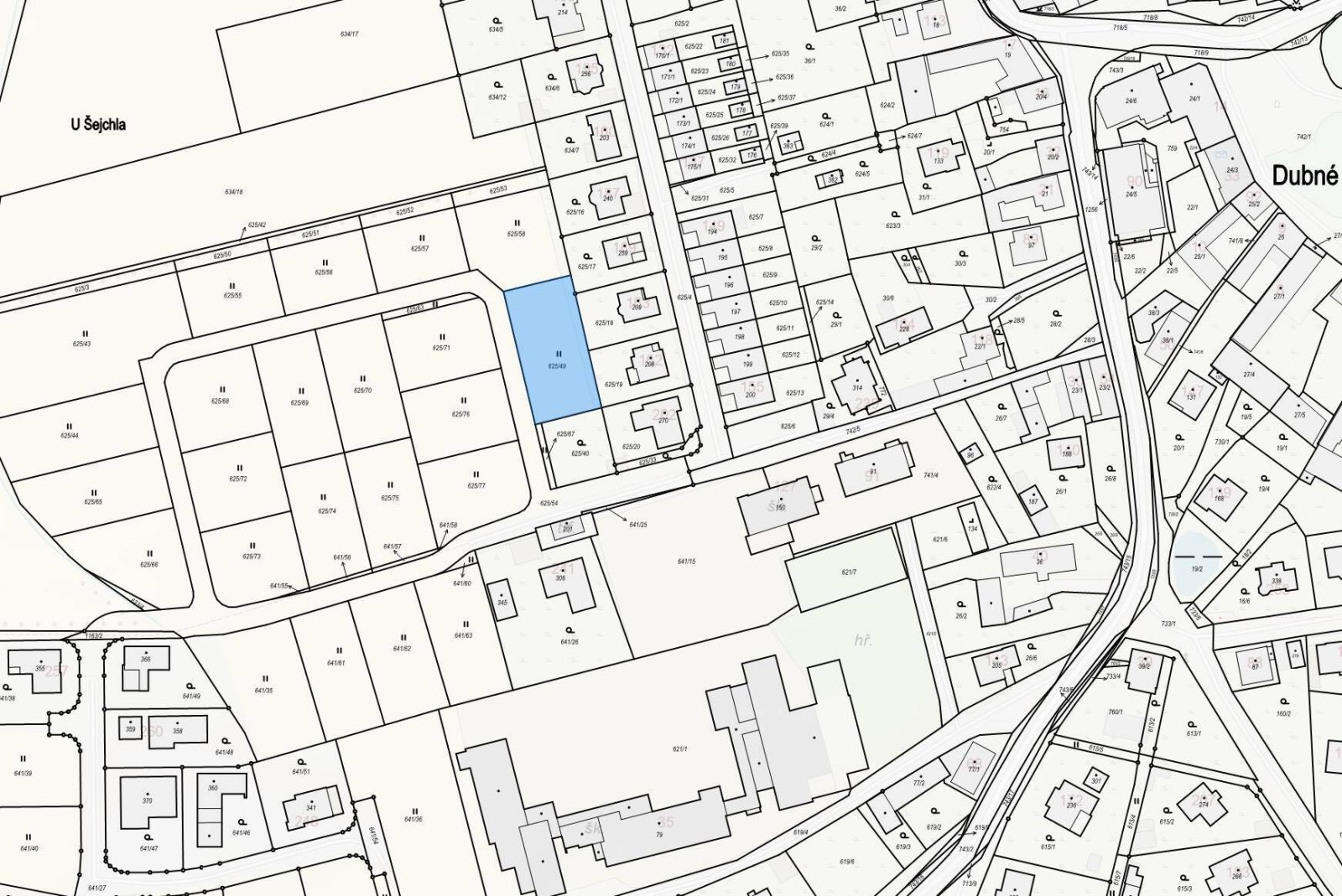 o výměře 990 m2 obdélníkového tvaru v obci Dubné v Jižních