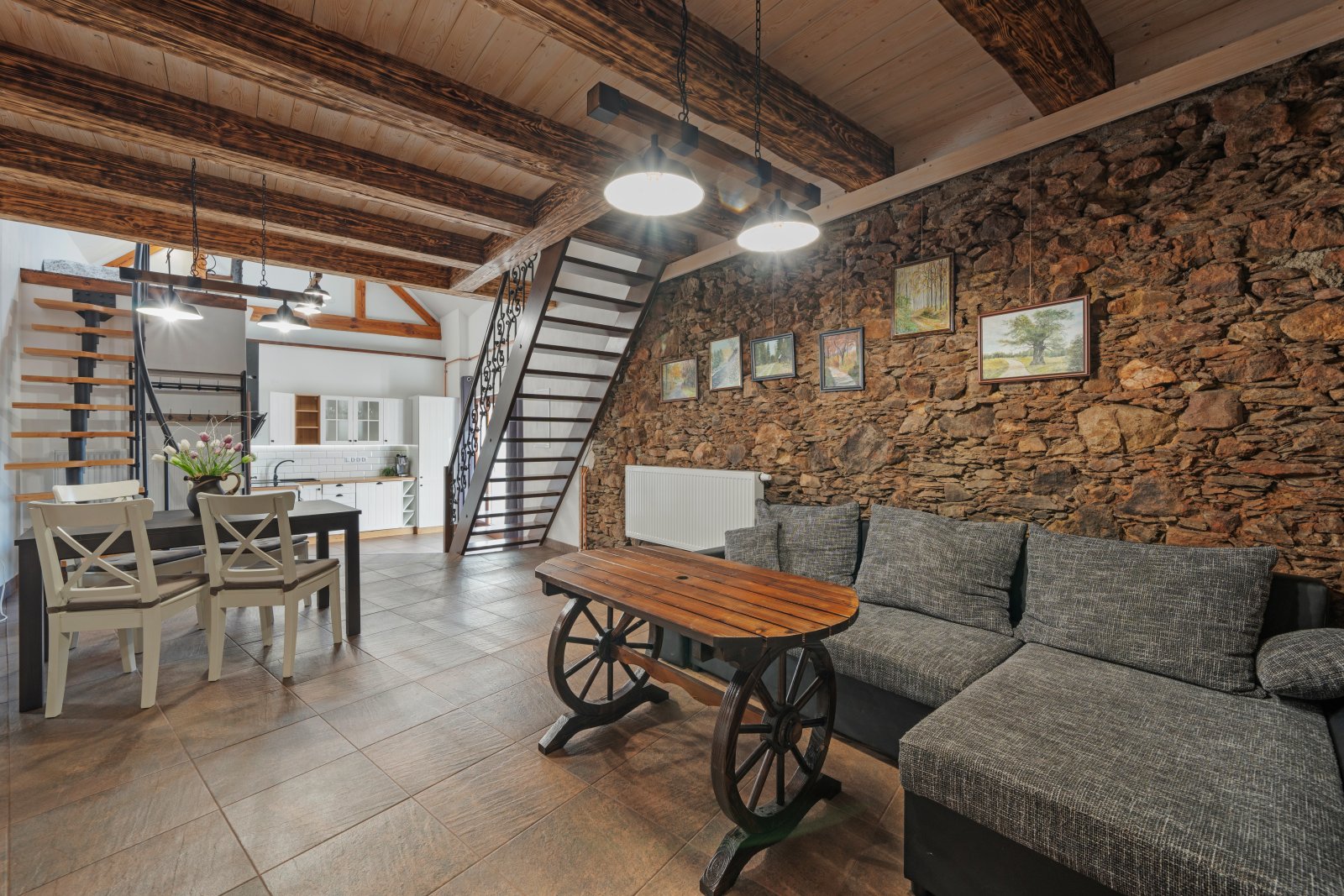 • užitná plocha: 208,8 m² (byt + apartmán) + 44,2 m² (vejminek