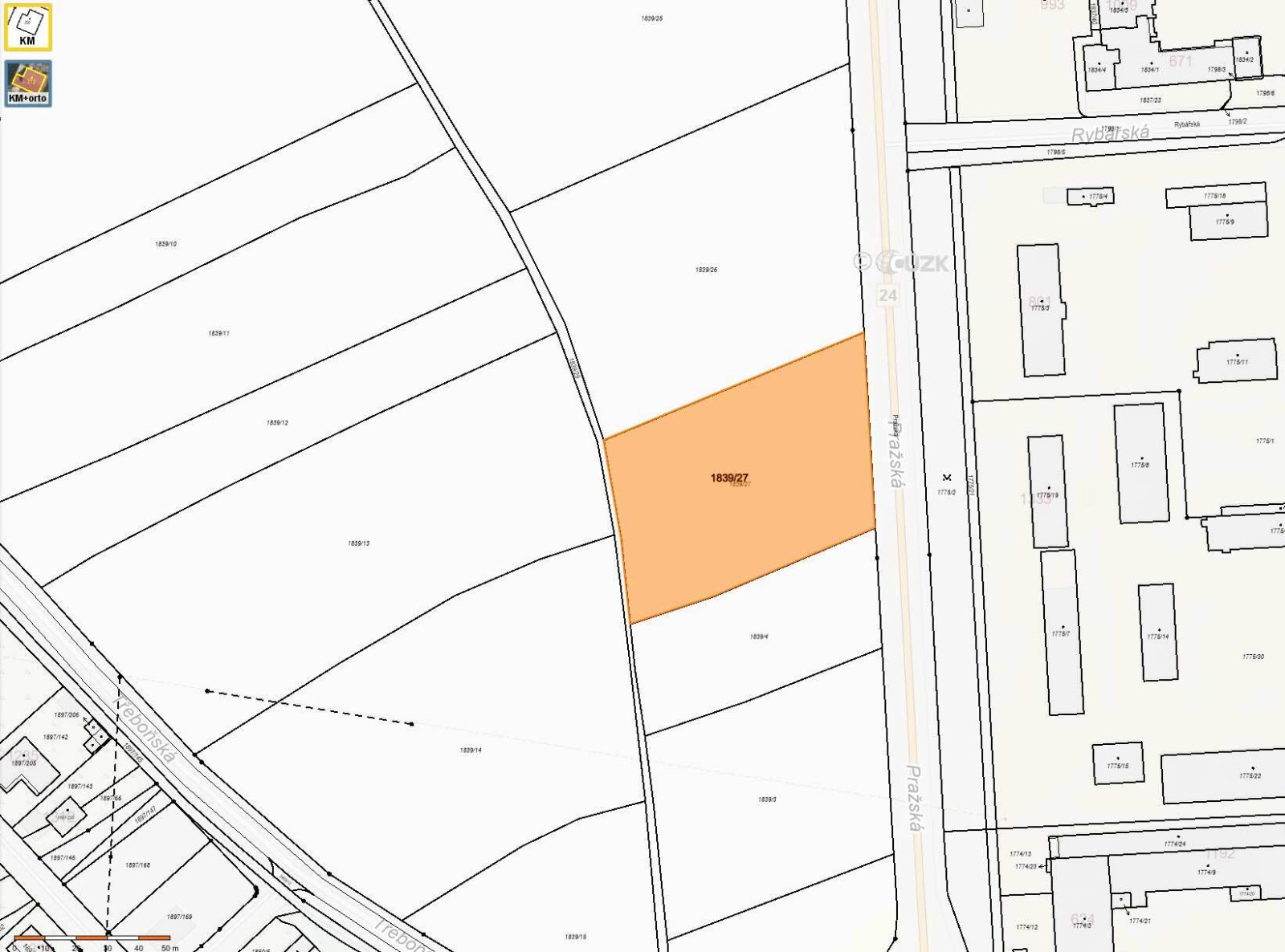 Prodej stavebního pozemku 5.132 m² - Třeboň, ul. Pražská 12 573 400 Kč ( 2 450 Kč/m2 )